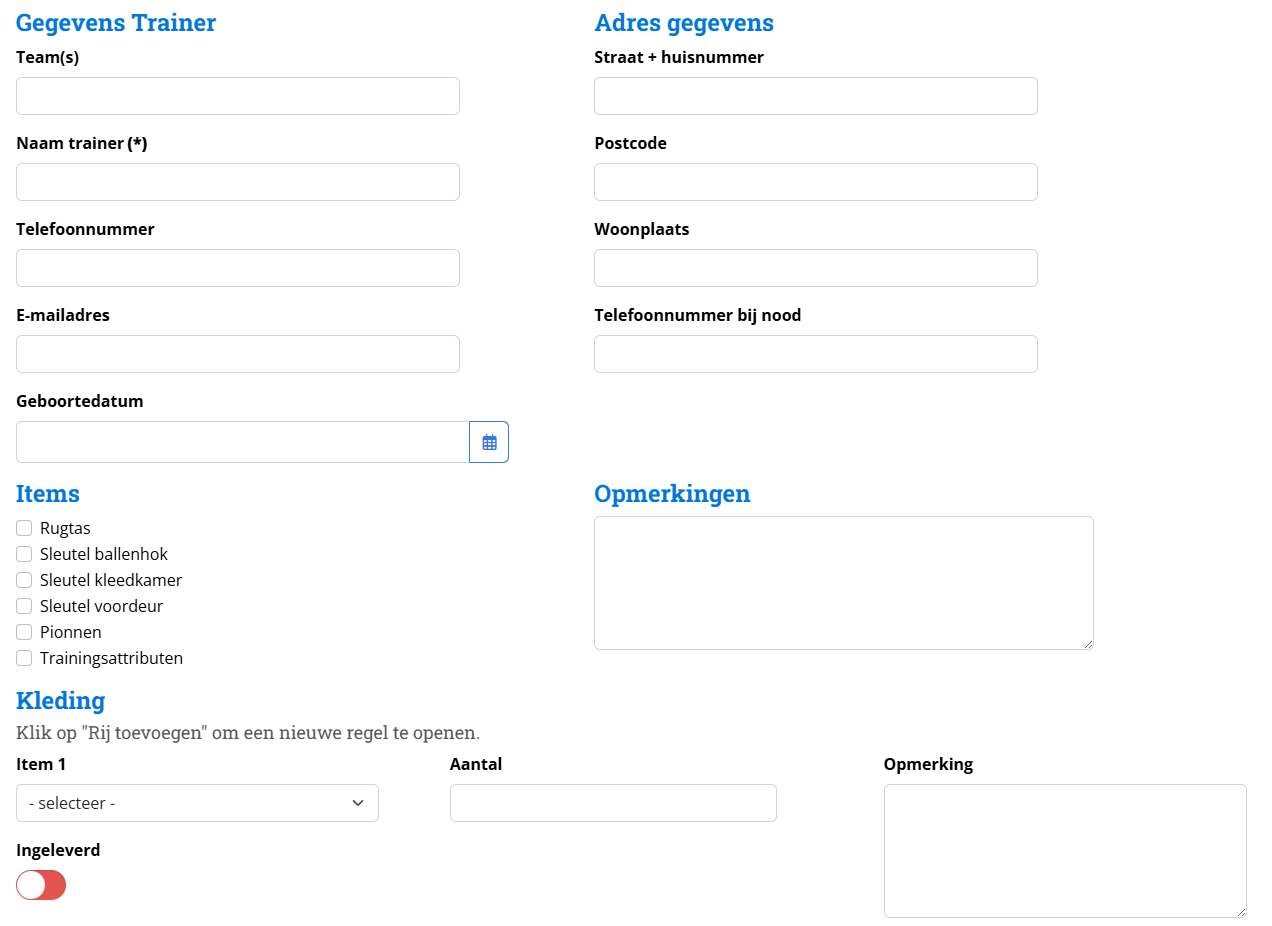 Hieronder een voorbeeld van een Trainers lijst welke we voor een club hebben gemaakt: